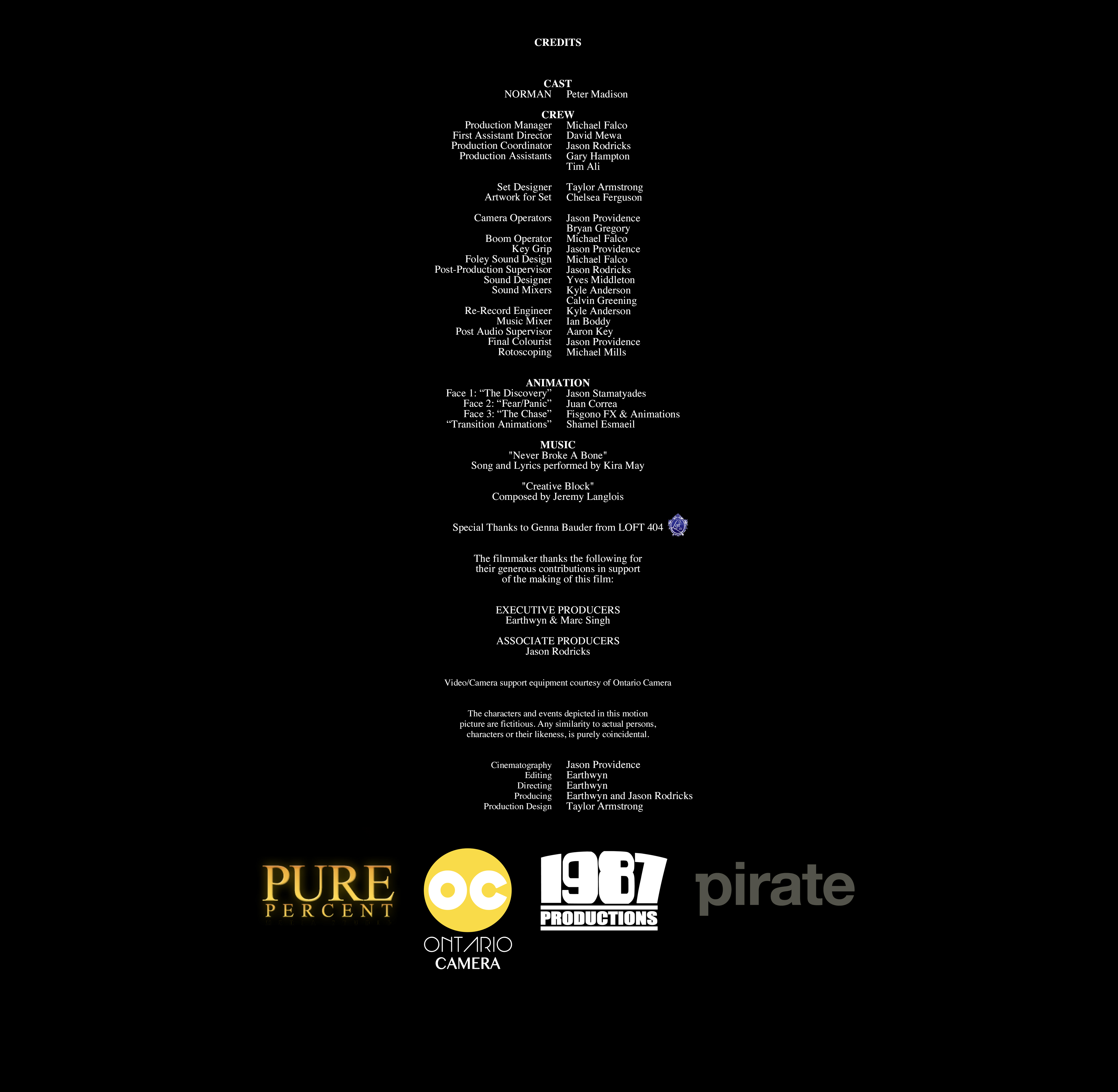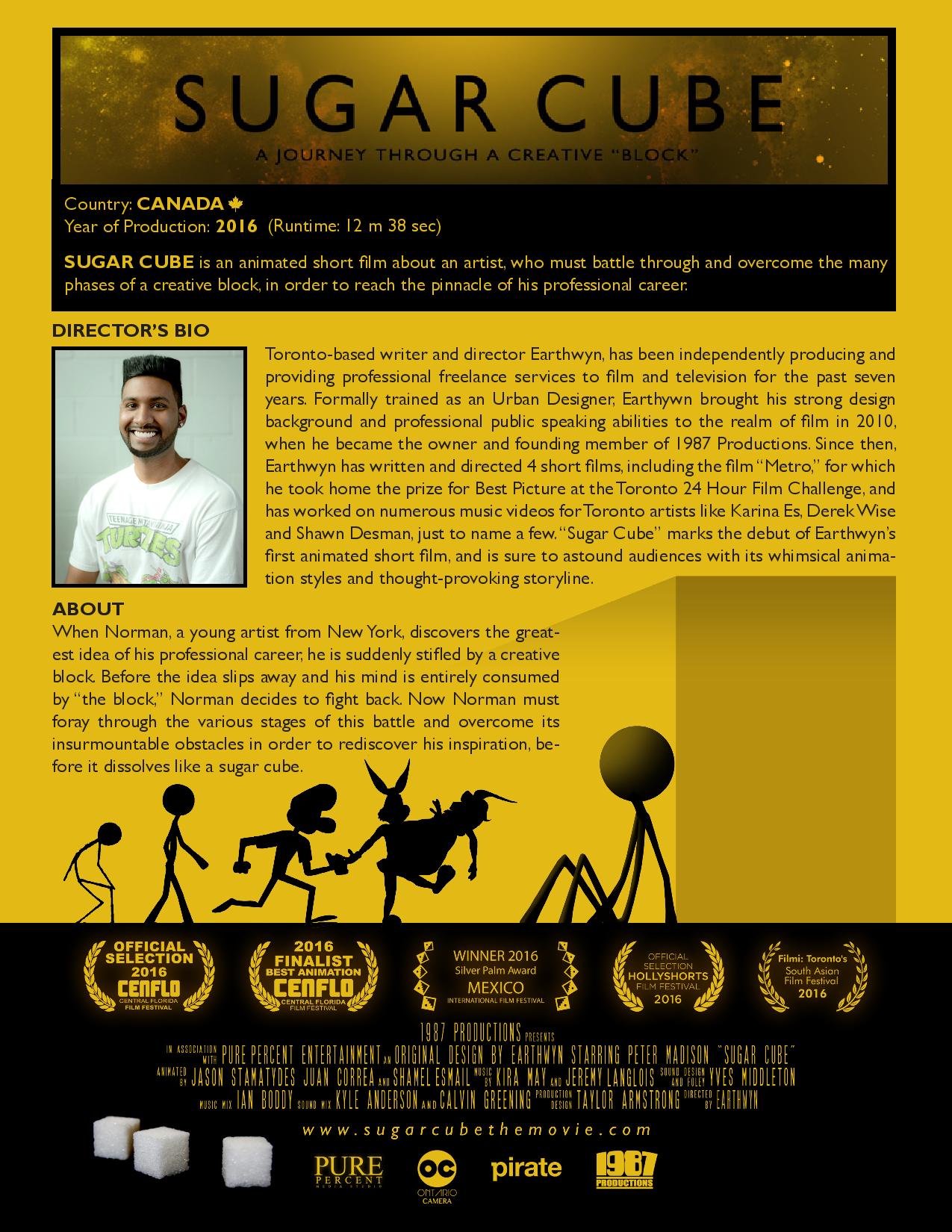 In association with Pure Percent Entertainment starring Peter Madison "Sugar Cube" Animated By Jason Stamatydes, Juan Correa ∧ Shamel Esmail Music By Kira May ∧ Jeremy Langlois Sound Design and Foley Yves Middleton Music Mix Ian Boddy Sound Mix Kyle Anderson ∧ Calvin Greening Production Design Taylor Armstrong