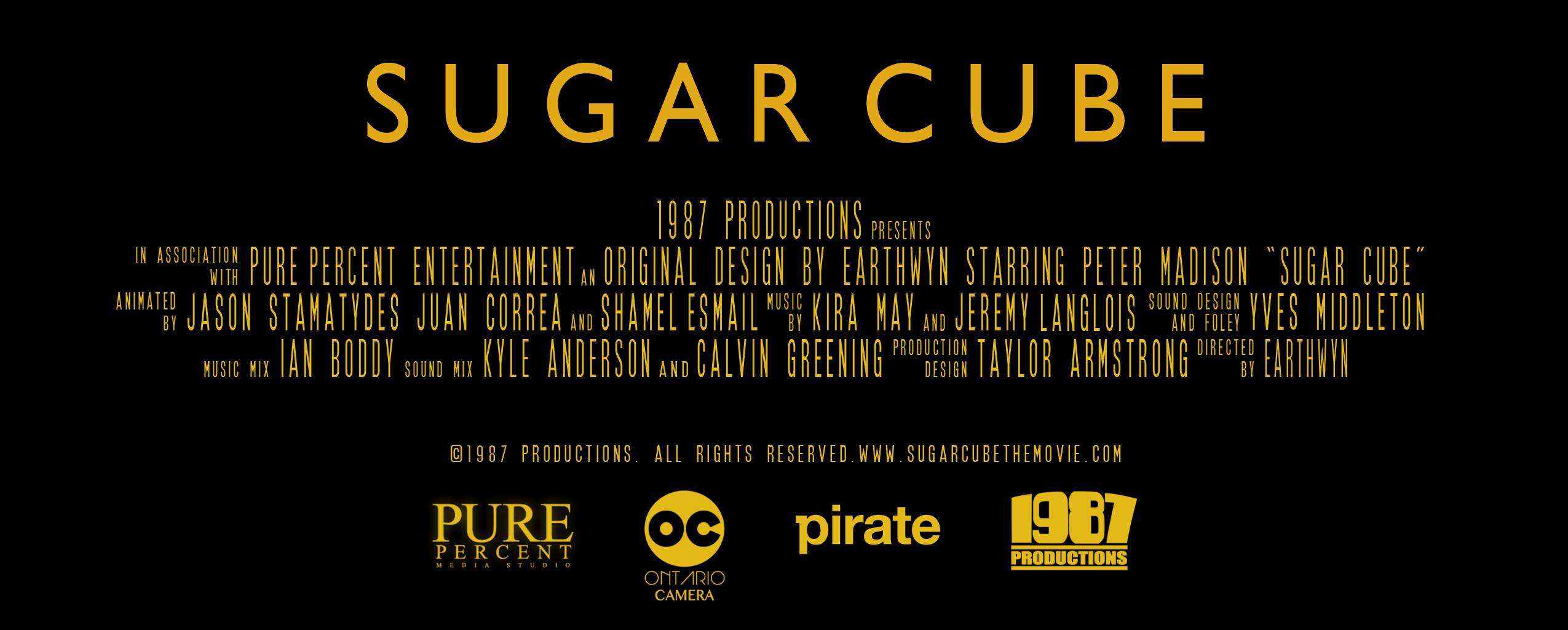 In association with Pure Percent Entertainment starring Peter Madison "Sugar Cube" Animated By Jason Stamatydes, Juan Correa ∧ Shamel Esmail Music By Kira May ∧ Jeremy Langlois Sound Design and Foley Yves Middleton Music Mix Ian Boddy Sound Mix Kyle Anderson ∧ Calvin Greening Production Design Taylor Armstrong